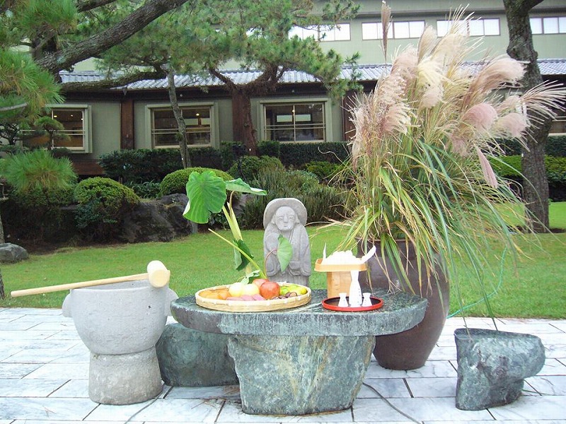 実りの感謝と今後の豊作を祈って、団子や秋の収穫物(芋、栗、果物など)のほか、稲穂に見立てたススキなどをお供えします。
