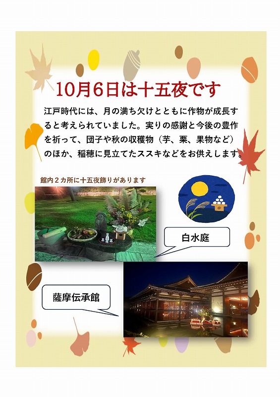 【場所】フロント中庭(白水庭)、薩摩伝承館池