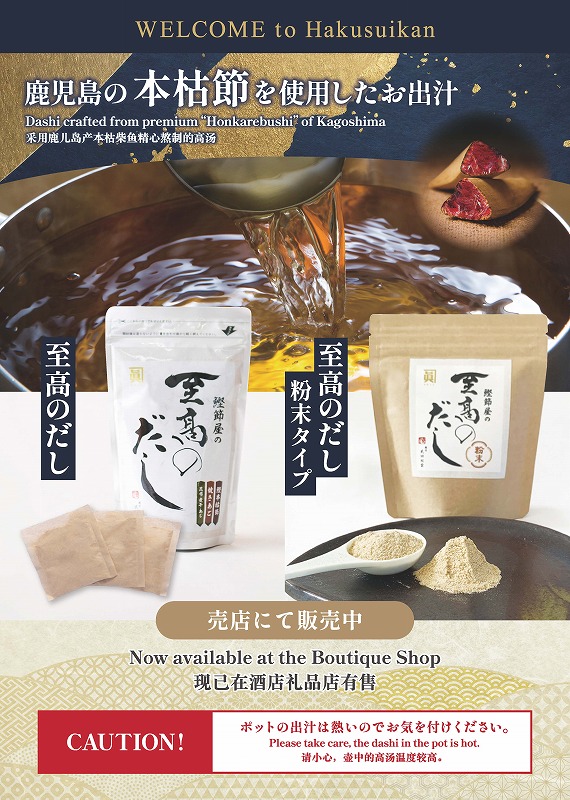 また、ラウンジで提供している「至高のだし」は当館の売店にて販売中です!