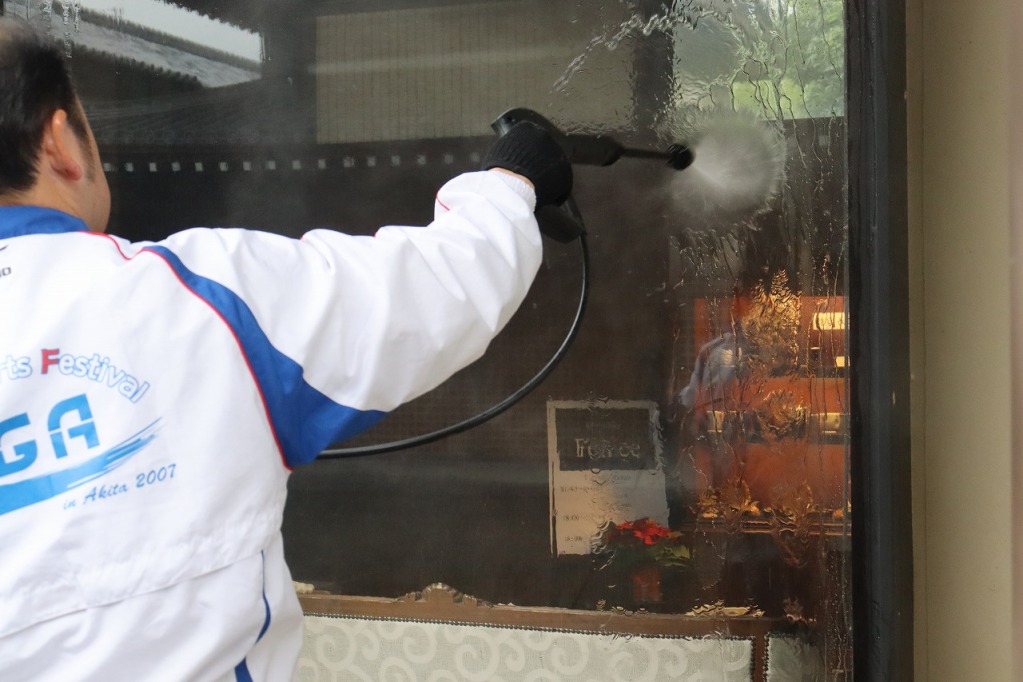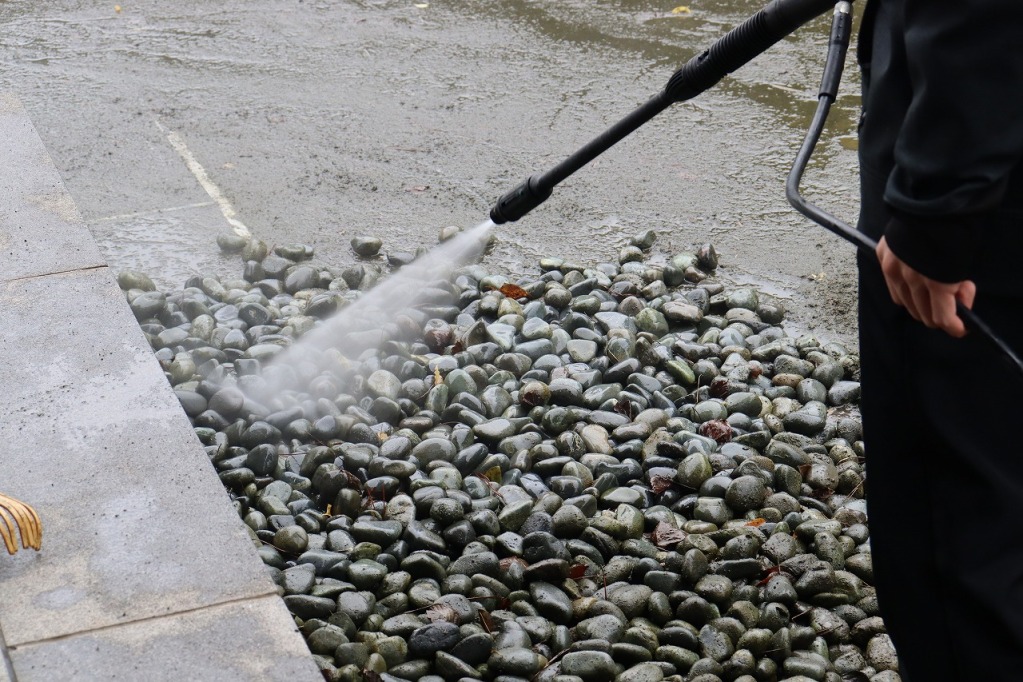 水圧で苔を剥がせますが、ピンポイントなので手作業で底をさらう工程は欠かせません。