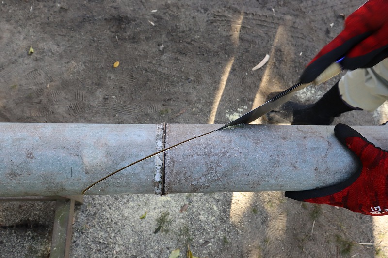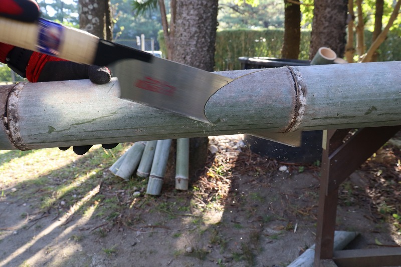 電動のこぎりで切ると刃の回転の摩擦熱で切断面が焼けてしまい、見栄えが悪くなってしまうので手作業でしているとの事でした。