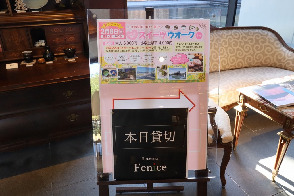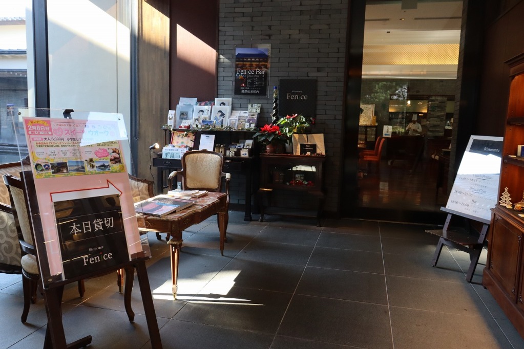 当館敷地内の美術館「薩摩伝承館」内のリストランテFenice(フェニーチェ)も立ち寄り先になっていて、本日試食会が行われています。こちらのスイーツウォークは10/1から定員10名限定で参加者の募集があり、およそ1カ月で満員になっているようです。