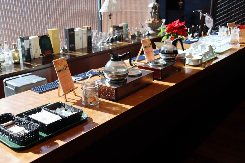 今日の検証会のためにBarカウンターにドリンクコーナーが作られています。当日もこの様に準備される予定です。