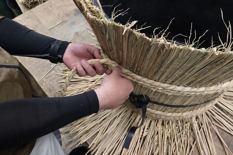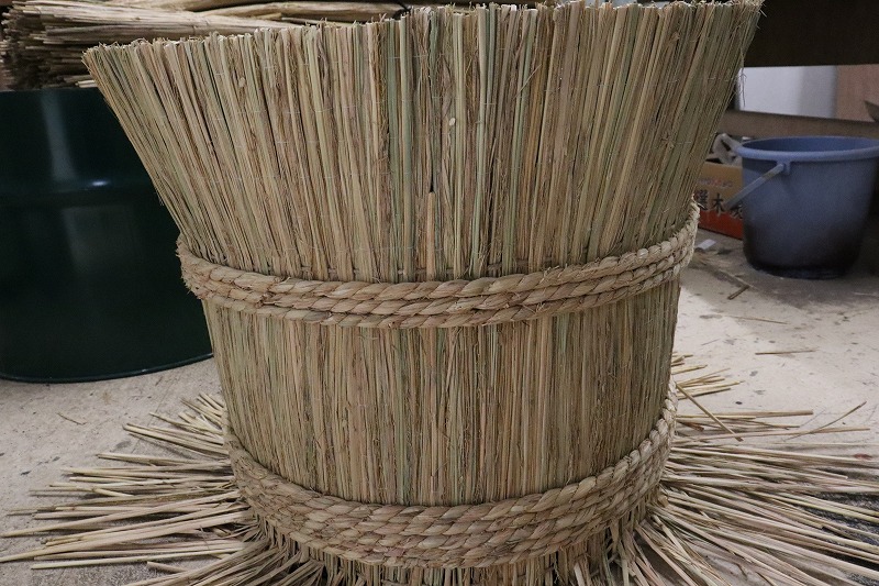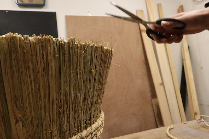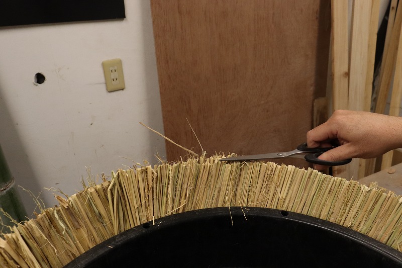 最後に飛び出た藁をハサミで整えていきます。