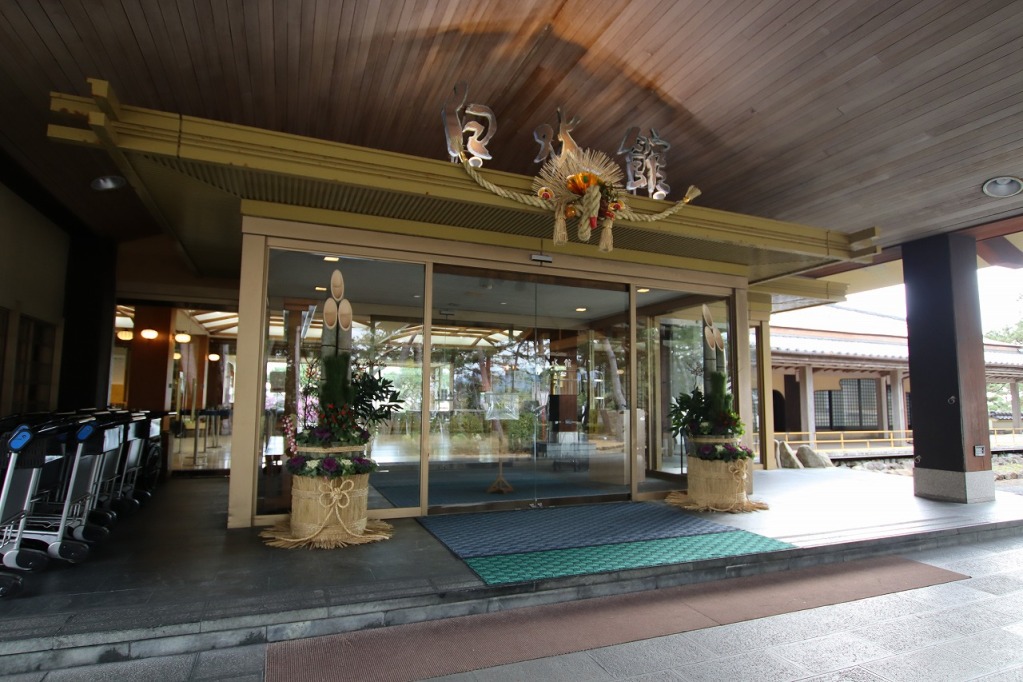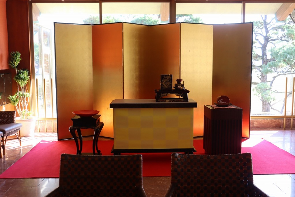 休館日の昨日のうちに、館内のロビーや宴会場前の廊下などにもお正月飾りが設置されていました。