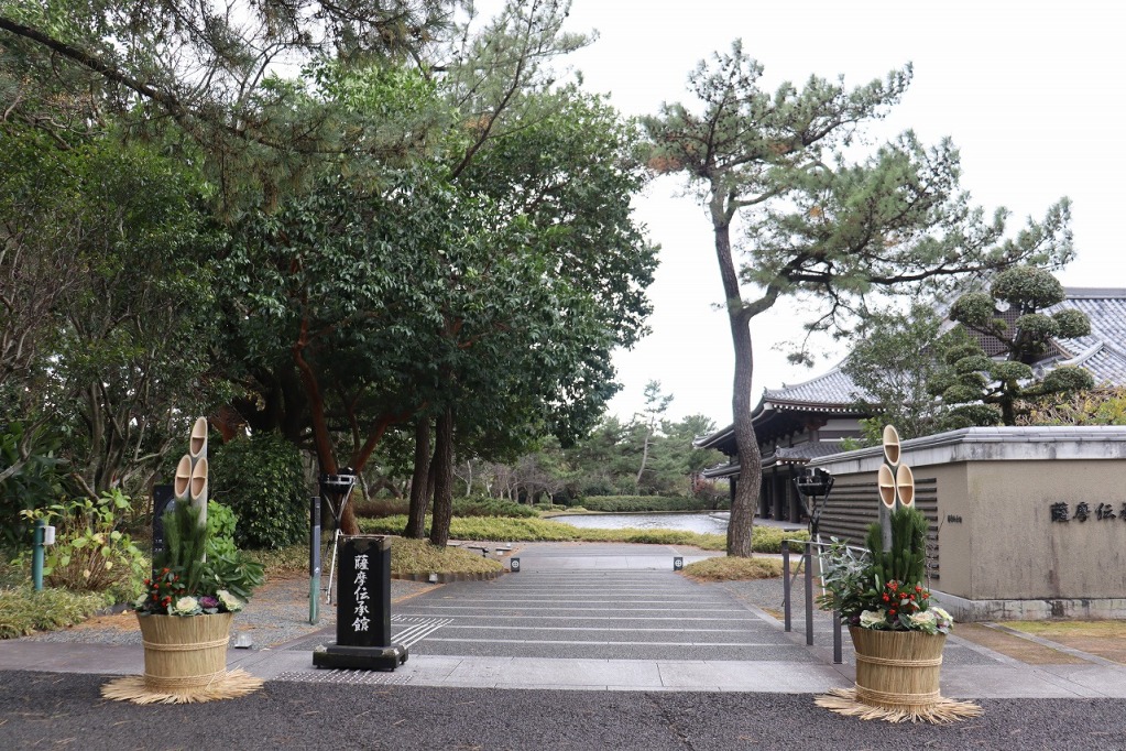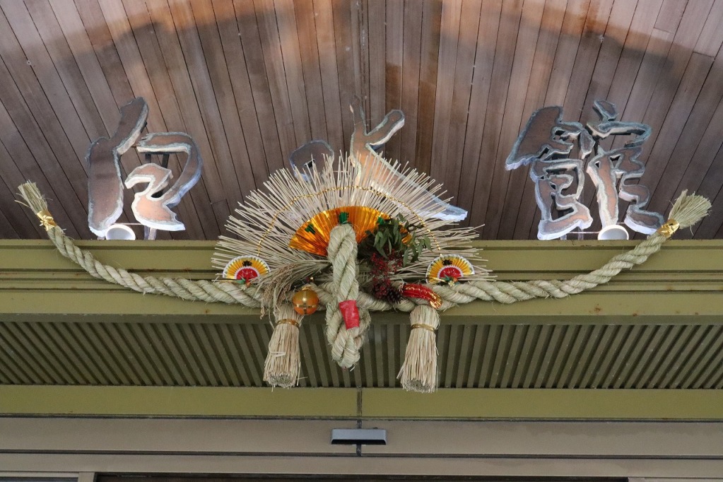 設置完了しました!薩摩伝承館の建物入り口にもしめ縄飾りが取り付けられています。