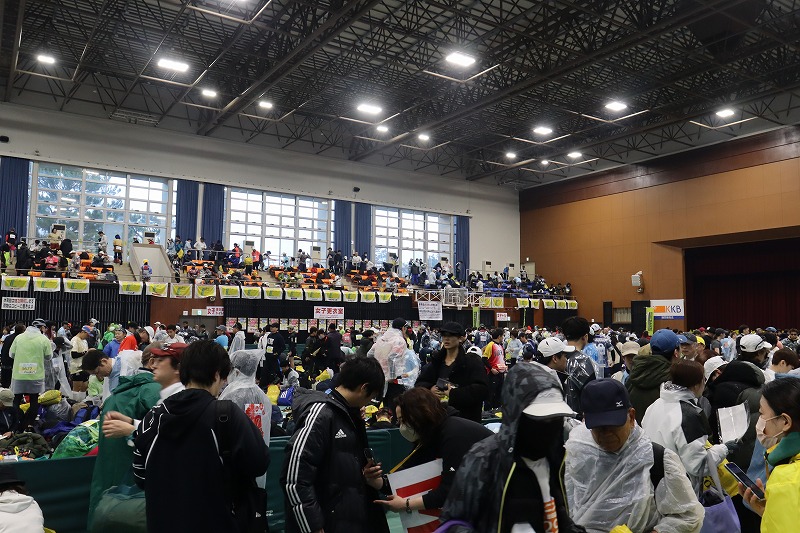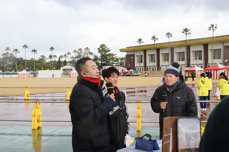 約10,000名のランナーが出発し終わり、指宿陸上競技場へ戻ってみると指宿総合体育館前特設ステージにおいて