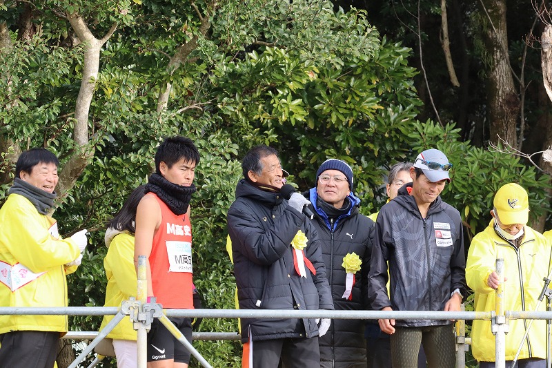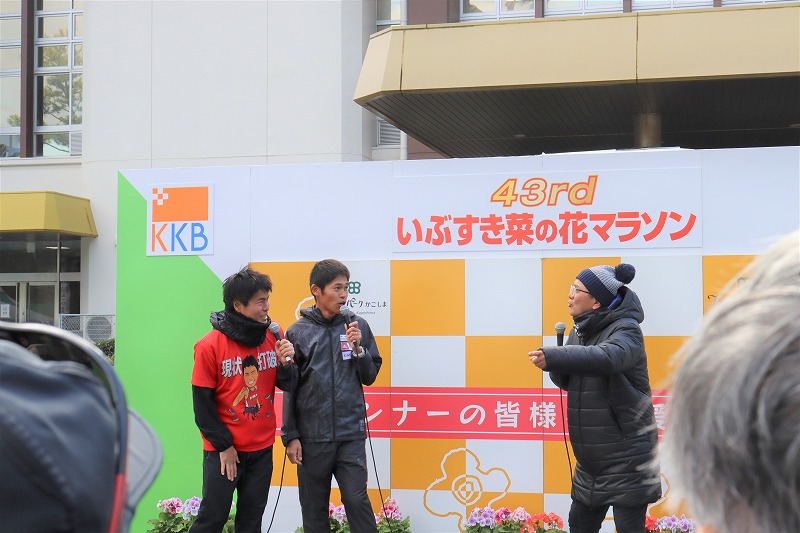 スタート前には大会実行委員長、大会会長の打越明司指宿市長などからご挨拶があり、毎年大会を盛り上げて頂いている大会ゲスト瀬古利彦さんからランナーの皆さんへ応援メッセージを届けていました。