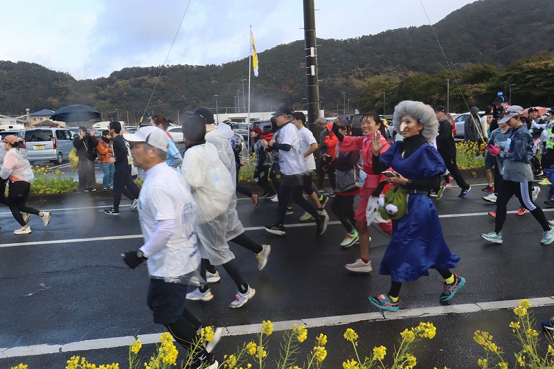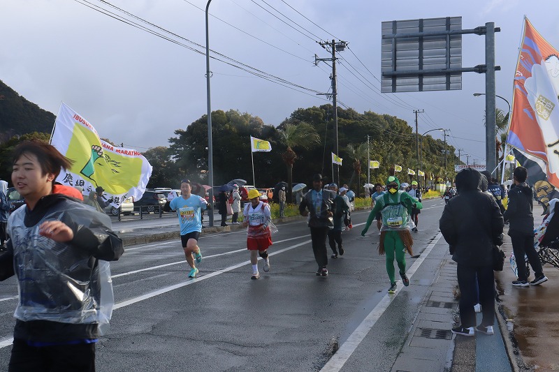 今回も菜の花マラソン恒例の仮装したランナーの方々もいました。