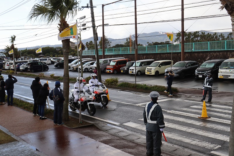 瀬古利彦さんが「皆さんの行いが良いので晴れました。頑張って池田湖まで完走しましょう」と声を掛けていました。