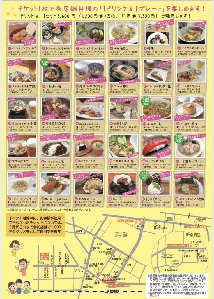 2月15日 (日) のみ参加店舗で1枚1,000円のグルメ券として使用可能。
