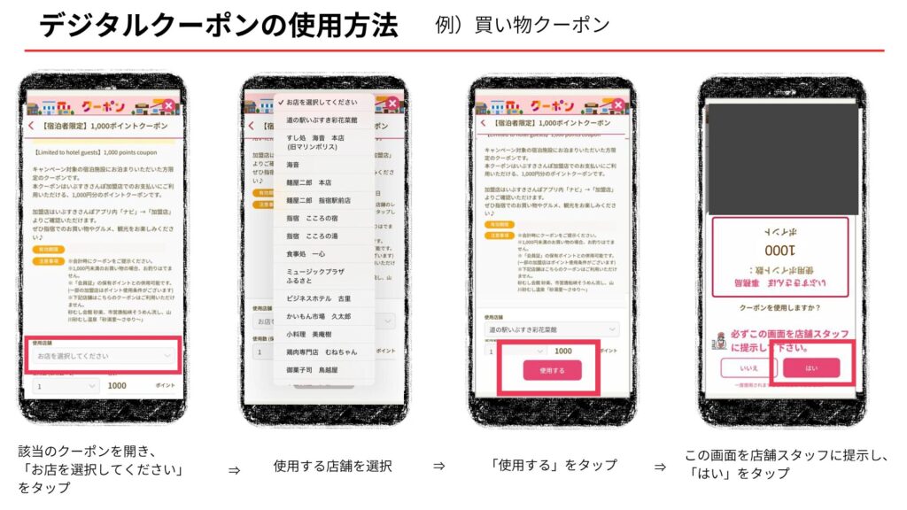 ※お買い物クーポンはアプリ内対象施設のデジタルクーポンとして利用可能