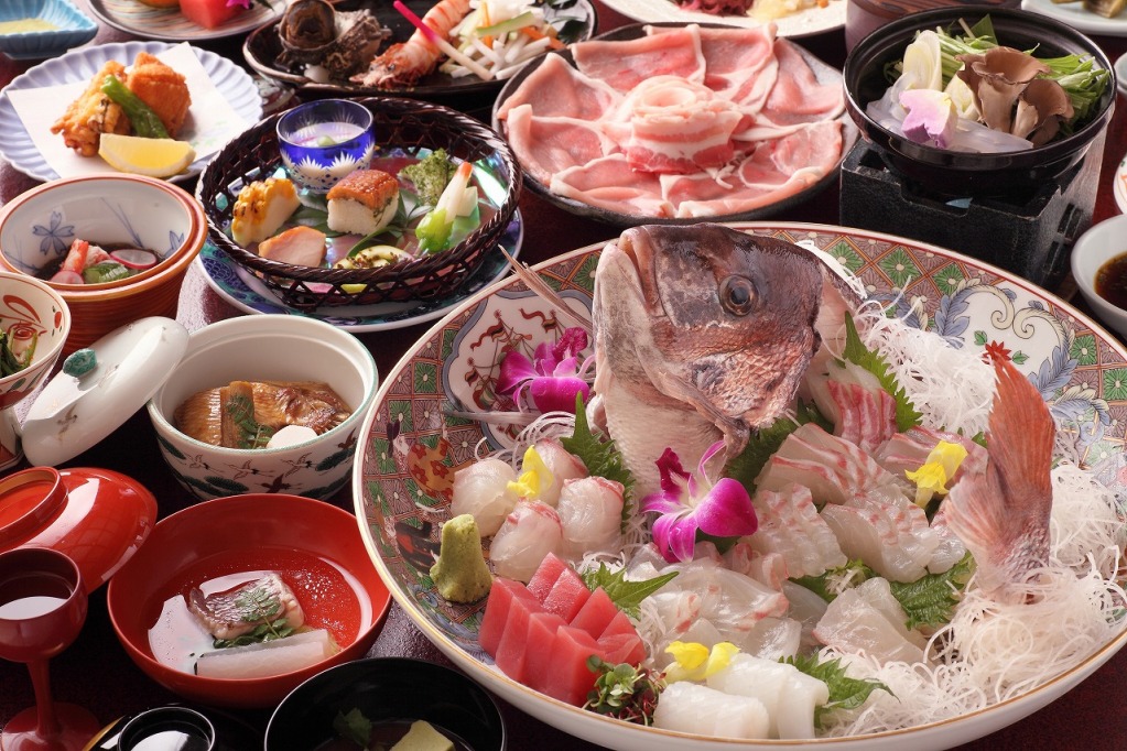 鯛のお造りを中心とした和食会席のご夕食(1泊二食付)プランをご準備いたします。