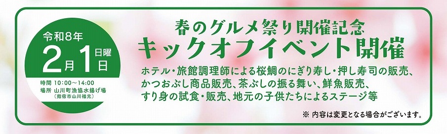 開催初日の2月1日(日)には山町漁協水揚げ場にて『キックオフイベント』が開催されます。