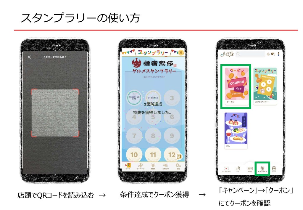 ・スタンプを3ヶ所獲得した方に漏れなく300ポイントクーポン発行