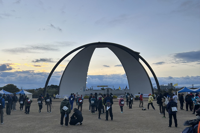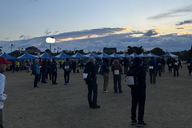 エイドにはチャックポイントを兼ねる場所もあり、次に撮影に向かった揖宿神社は15kmコース最後のチェックポイントでした。