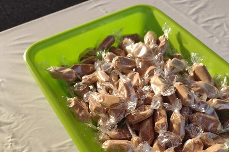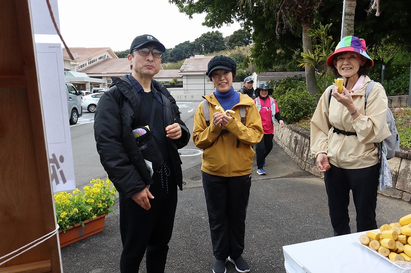 JR山川駅のエイドでは名物「いもあめ(芋飴)」がマーチに参加の皆さんに配られていました。