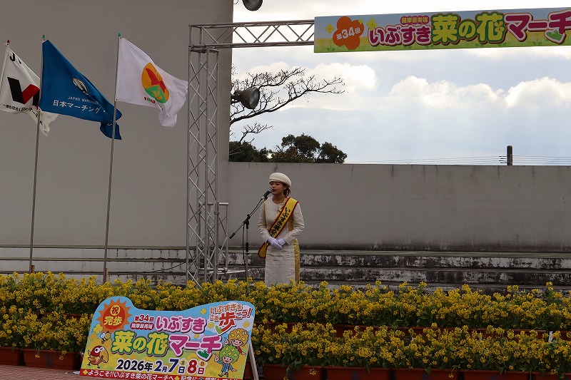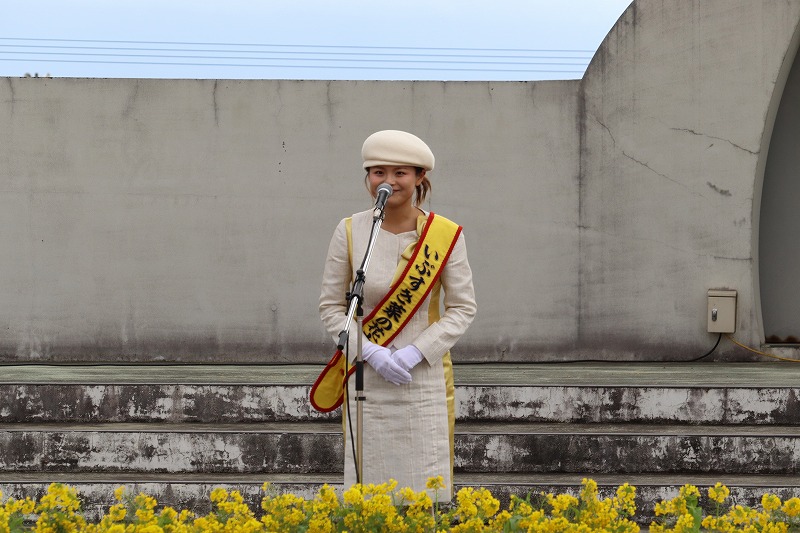 朝9時頃の6kmコースの出発式では、いぶすき菜の花大使の今村俊吏(いまむらしゅんり)さんが挨拶されていました。