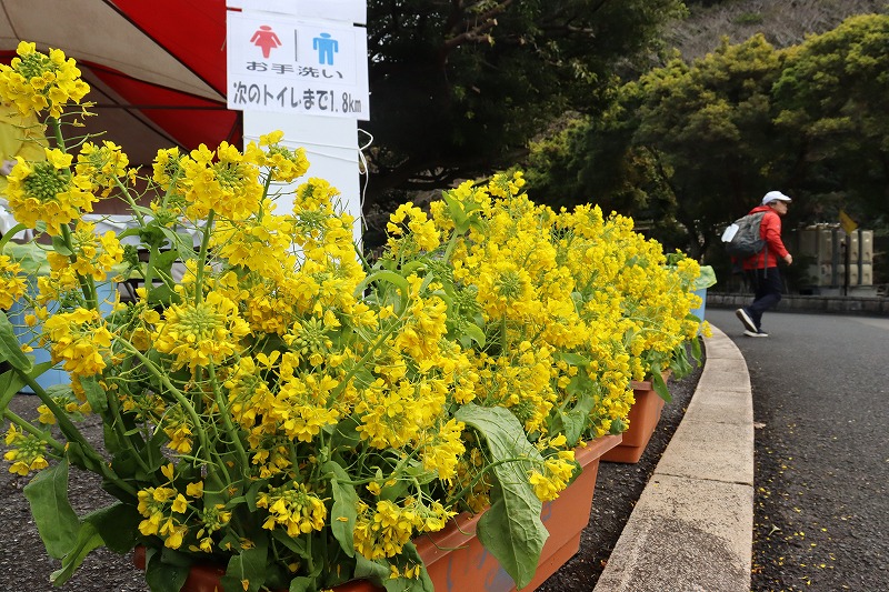先月開催された「いぶすき菜の花マラソン」から「いぶすき菜の花マーチ」の期間中は市内あちこちに菜の花が咲き続け、各エイドにも大会シンボルの菜の花のプランターが置かれています。