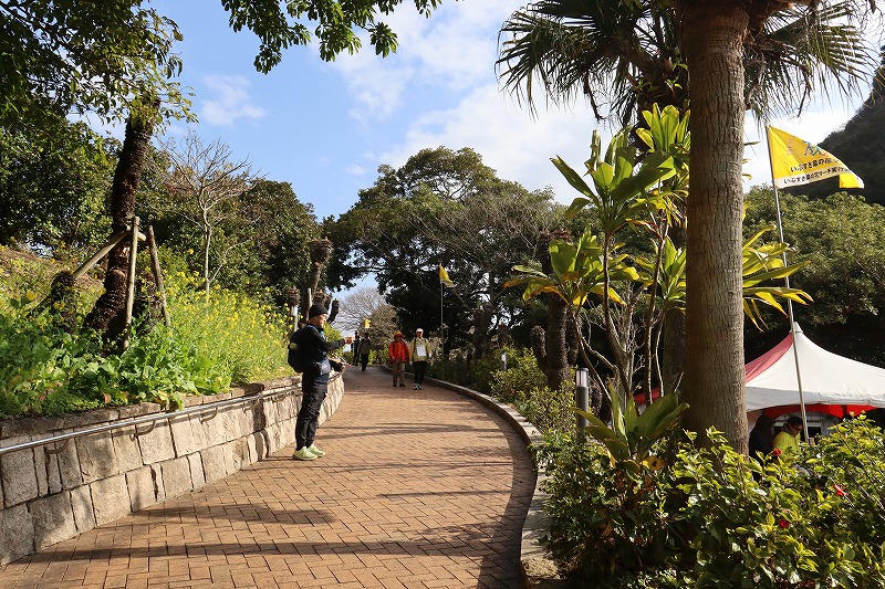 会場内はもちろん、市内あちこちで大会シンボルの菜の花が綺麗に咲いています。鹿児島県指宿市は、12月下旬から2月上旬にかけて約1000万本の菜の花が咲き誇る、日本で最も早い春の訪れを感じられる名所です。