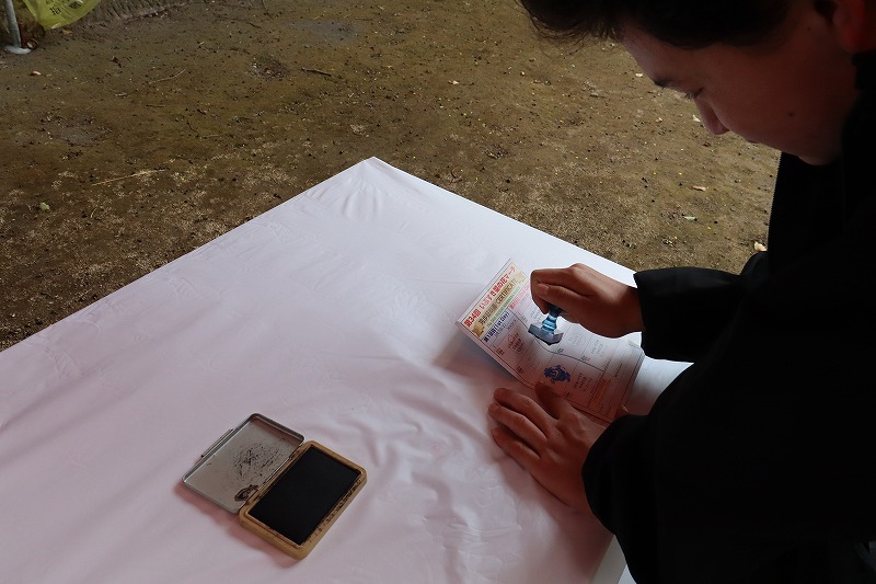 チェックポイントでは、このようにスタンプブースが設置されていて、持参しているスタンプカードに参加しているコース内のスタンプを集めていきます。