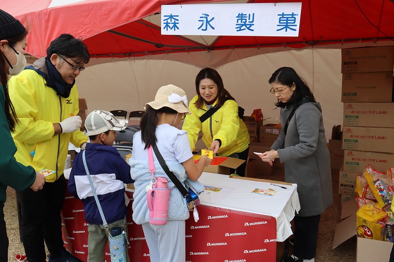 森永製菓さんのブースでは、お菓子な探検3kmコースで集めた宝探しクイズで集めたスタンプと景品のお菓子が交換されていました。