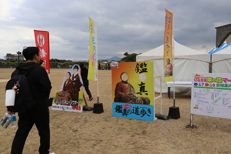 さらに早春の鹿児島を代表する3つのウォーキングイベント「かごしま春の3大ウォーク2026」では、今日開催のいぶすき菜の花マーチを皮切りに、「第14回 南さつま海道 鑑真の道歩き」、「第30回 龍馬ハネムーンウォークin霧島」が行われることから、今日の会場内に様々なブースが設置されていました。3つの大会すべてのスタンプラリーに参加した方にはもれなく景品がプレゼントされます。