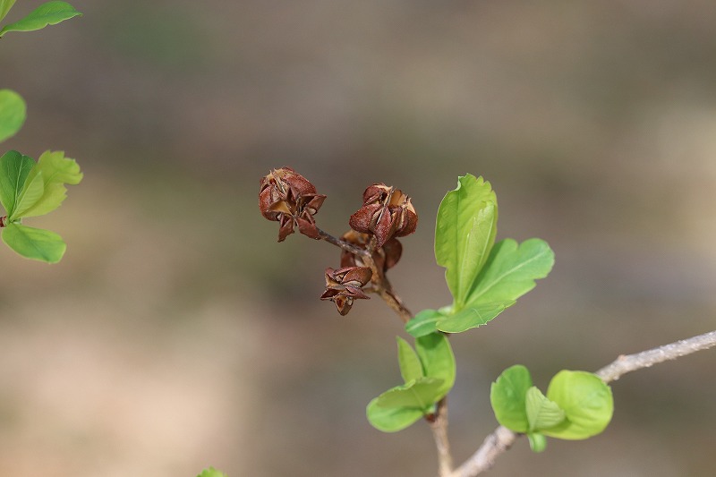 調べてみると、秋(9〜10月頃)に褐色に熟した種を採取して、乾燥させずにすぐ蒔く「とりまき」が基本だそうです。この時期に枝に残っているので、去年の秋に実ったものがそのまま枝についているのでしょうか…。種は1つの果実に複数入っていそうです。発芽率は低いらしく、日当たりと水はけの良い場所を好み、種から育てて約3年で開花することがあるようです。