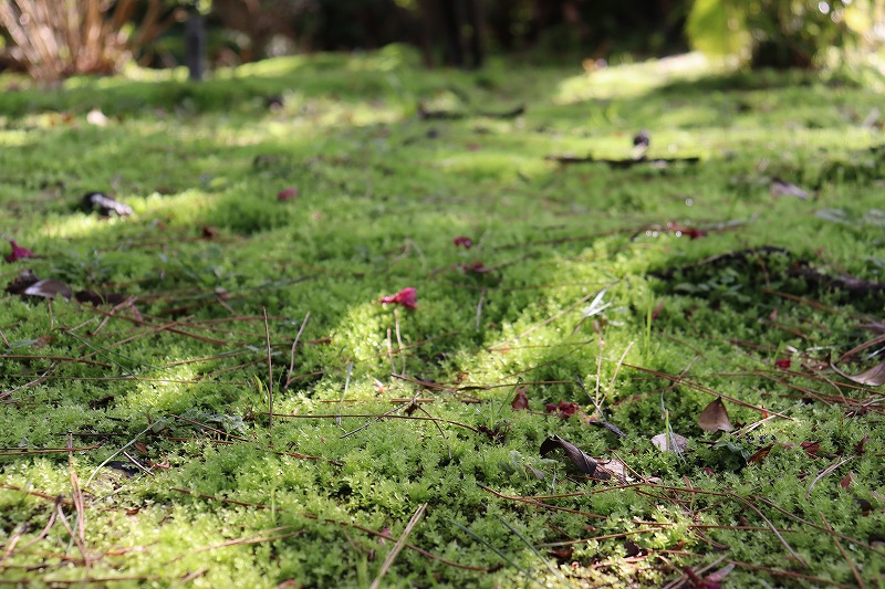苔(コケ)は湿った場所を好みますが、水はけが悪いと蒸れて腐りやすいため、基本的に「保水されつつ水はけの良い環境」が合っています。この苔は恐らくコツボゴケの一種だと思います。他にも様々な形や種類の苔が密集しているようでした。