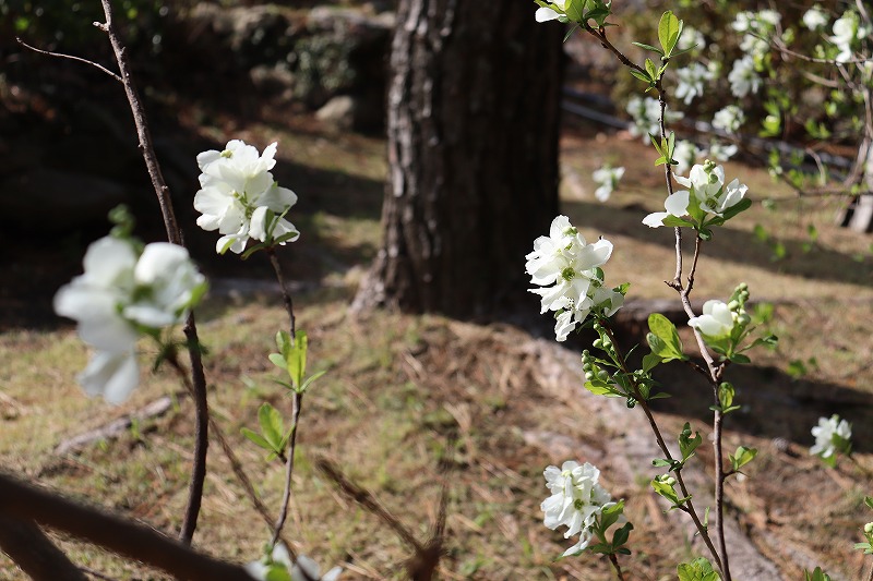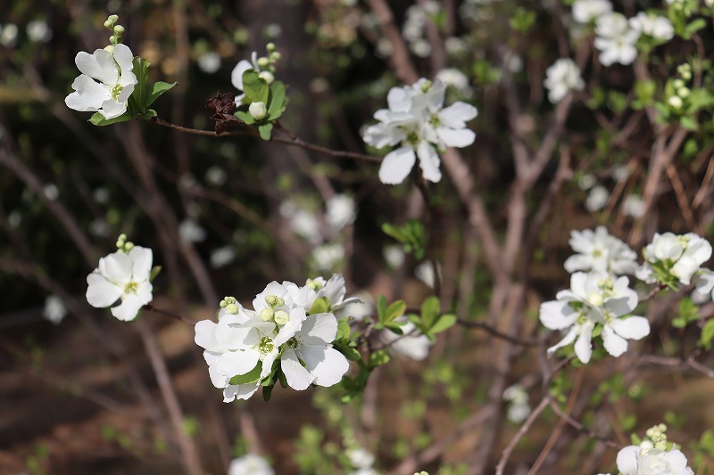 庭先にあると純白の花弁が目を惹いて、とても綺麗です。バラ科の花なので桜やアーモンドの花にも何となく形や雰囲気が似ていますね。花の大きさは2cmから4cm位でした。