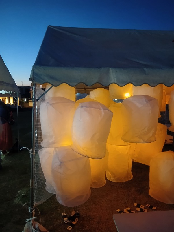 ランタンはLEDライトと中の風船にガスが充填されていて、風船のようにリリースすることは出来ませんでしたが、幻想的な光景でした。子供たちはしゃぼん玉も飛ばしていましたよ( *´艸`)