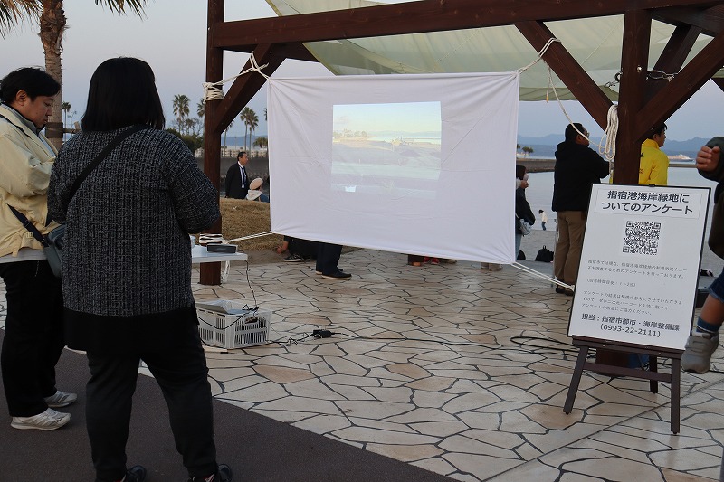 会場には、指宿港海岸が整備されていく様子をタイムラプス動画で見ることができました。