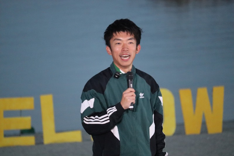 ステージの合間には、指宿菜の花マラソンへの参加をきっかけに指宿好きが高じて移住されてランナー&インフルエンサーとして活躍されているタクティを交えたトークライブが行われました。一緒にステージを盛り上げているのは、司会を務めた大村奈々さん、肥後美咲さんで、第2代、第3代「いぶすき菜の花大使」も務められた方々です( *´艸`)