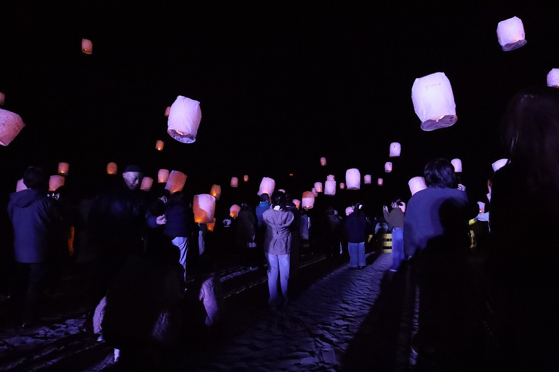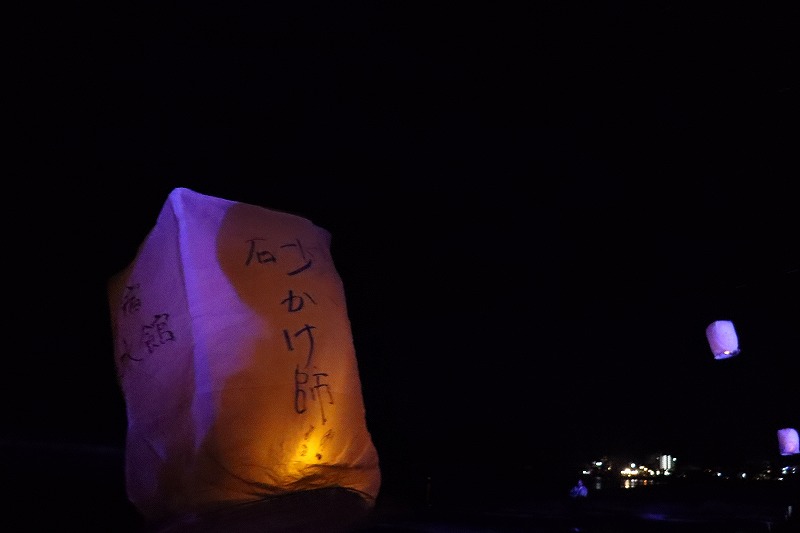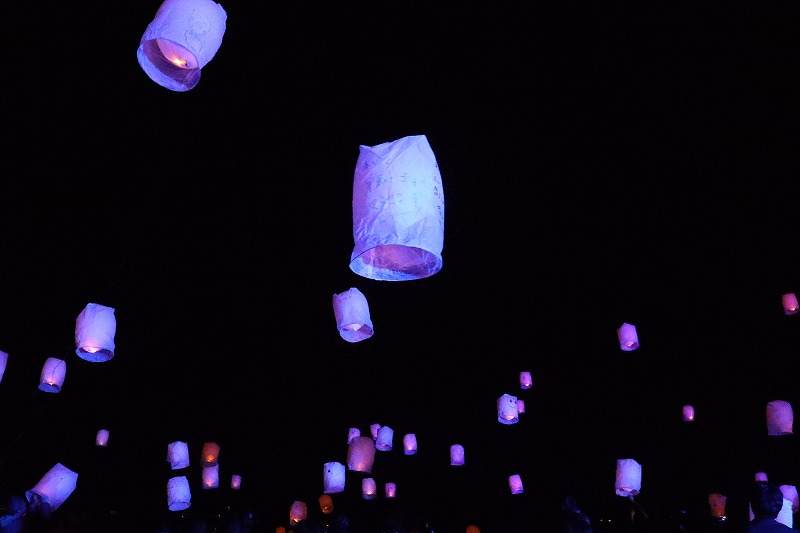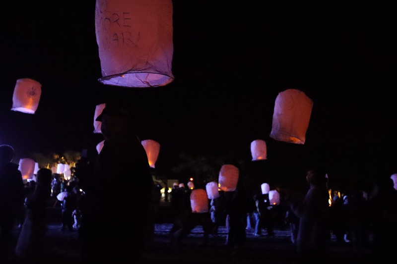 イベントはタクティがアナウンスを行い、願いを込める30秒間の静寂を促していよいよランタンが空に上がります。